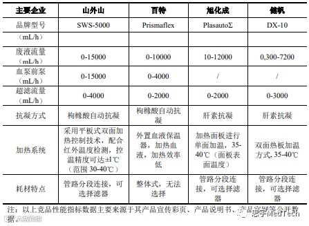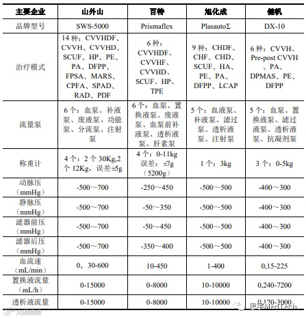 公司连续性血液净化设备与市场主流产品的核心参数对比如下:
