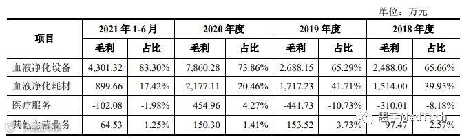 报告期内,公司毛利的主要来源于血液净化设备和血液净化耗材的销售,主营业务毛利构成情况如下: