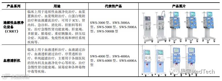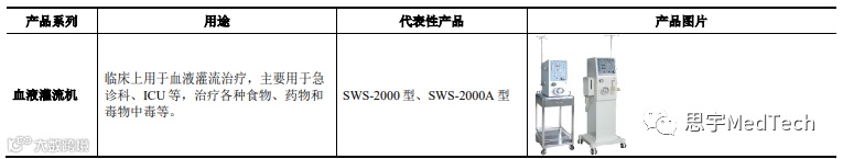 基于原创性血液净化设备关键核心技术,公司开发出血液灌流机、血液透析机以及连续性血液净化设备(CRRT),并自主开发出血液透析浓缩液、血液透析干粉等血液净化耗材,产品广泛应用于治疗各类急慢性肾功能衰竭、尿毒症、多脏器衰竭和中毒等多种病症。