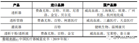 依据中国医疗器械蓝皮书(2019 年版),我国血液净化市场主要以进口产品为主,尤其是血液净化类高值医用耗材市场,进口产品占据 70%以上的市场份额,但随着国内厂家技术水平的不断加强,进口替代程度将会进一步提升。