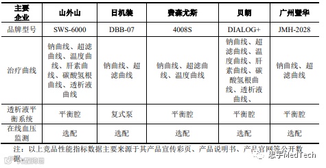 公司血液透析设备与市场主流产品的核心参数对比如下: