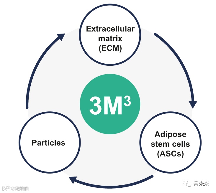 该平台基于脂肪干细胞(ASCs)之间发生的一个良性循环,在向分化的ASCs中加入活性颗粒后,产生的ECM中含有高度生物活性的ASCs,具有高度特异性的miRNA以及大量稳定的生长因子和特异性蛋白,它们共同具有促进组织再生所必需的特性。