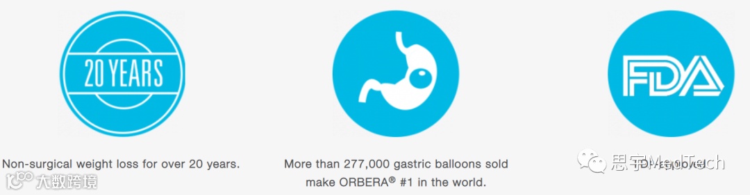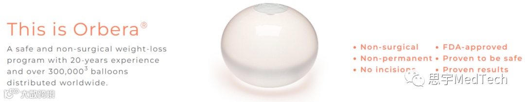 Orbera系统已于2004年在欧洲正式发售, 2015年通过FDA认证。作为胃内球囊减肥设备,其全球市场份额排名第一,拥有超过20年的历史,全球有超过超27万次植入,安全状况良好。产品优势如下: