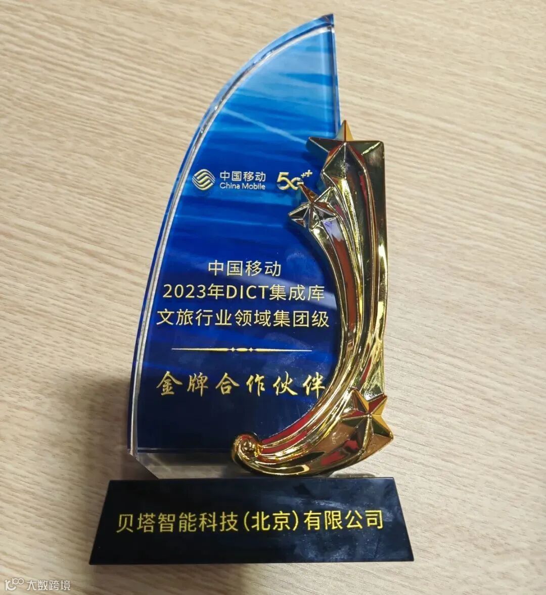 贝塔智能凭借与中国移动集团多年来的高质量合作和自身行业的深厚积累,荣获中国移动2023年DICT集成库文旅行业领域集团级金牌合作伙伴殊荣,该奖项也是中国移动集团在文旅行业领域内颁发的唯一一个金牌合作伙伴奖项。