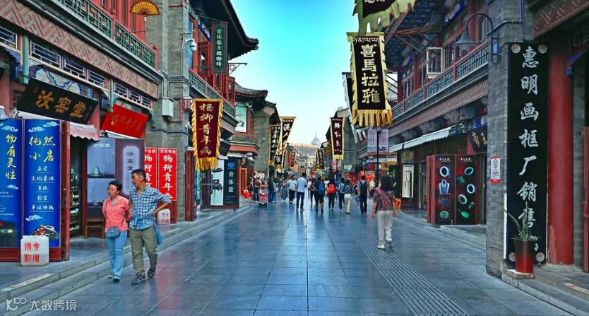 以天津津门故里案例为例,作为津门十景之一,天津古文化街一直坚持“中国味,天津味,文化味,古味”经营特色,以经营文化用品为主。