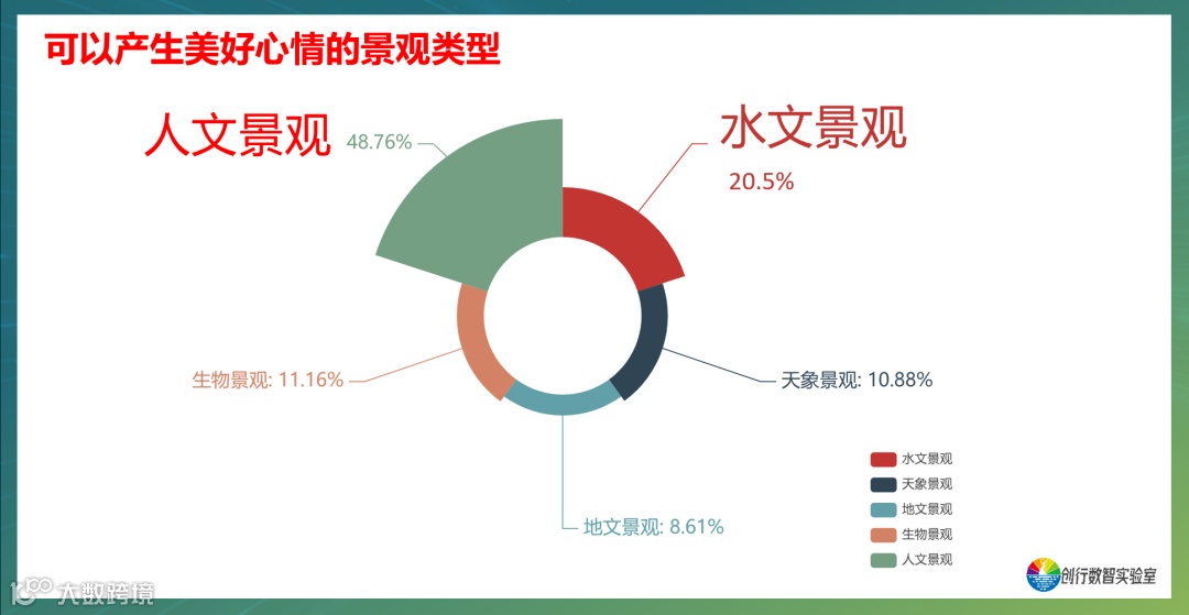 令人心情美好的文旅商业街区,有丰富的多层次的景观类型,其中最能调动游客美好心情的是人文景观,其次是水文景观。
