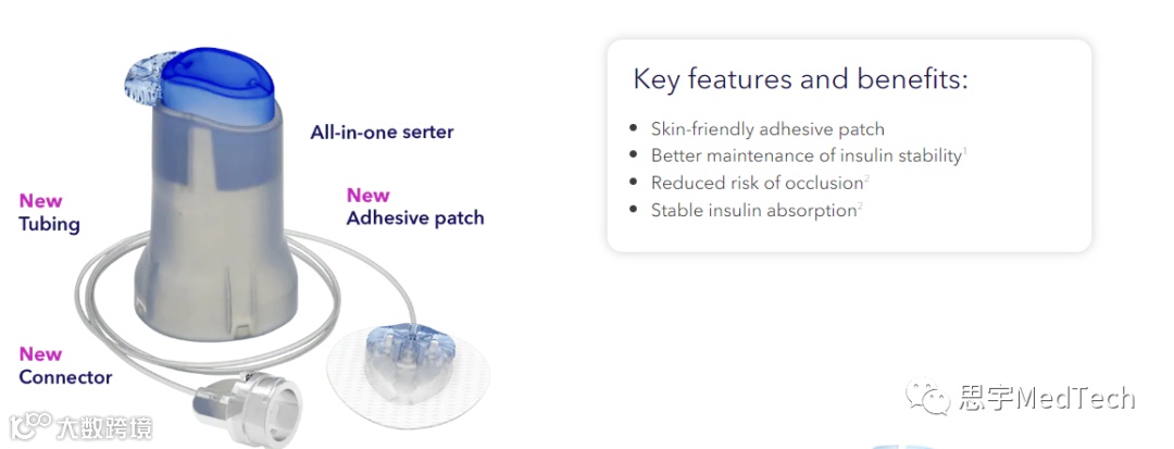 EIS提供了增强的新功能,包括使用长达7天,改进的便利性,舒适度,以及更好的胰岛素泵用户的生活质量。EIS可将胰岛素从胰岛素泵输送到身体内,通常需要每两到三天更换一次。