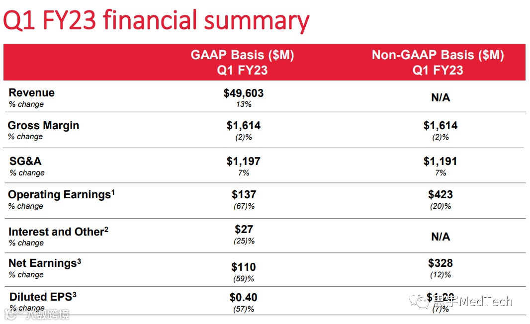 公司2023财年第一季度的表现证明,制药部门的基本面稳定,医疗部门取得切实进展。公司重申了全年非GAAP每股收益指导,因为我们仍然专注于医疗改进计划,并在制药业务增长的基础上继续发展。在整个公司,我们推动公司的业务发展,并继续致力于为股东创造价值。”