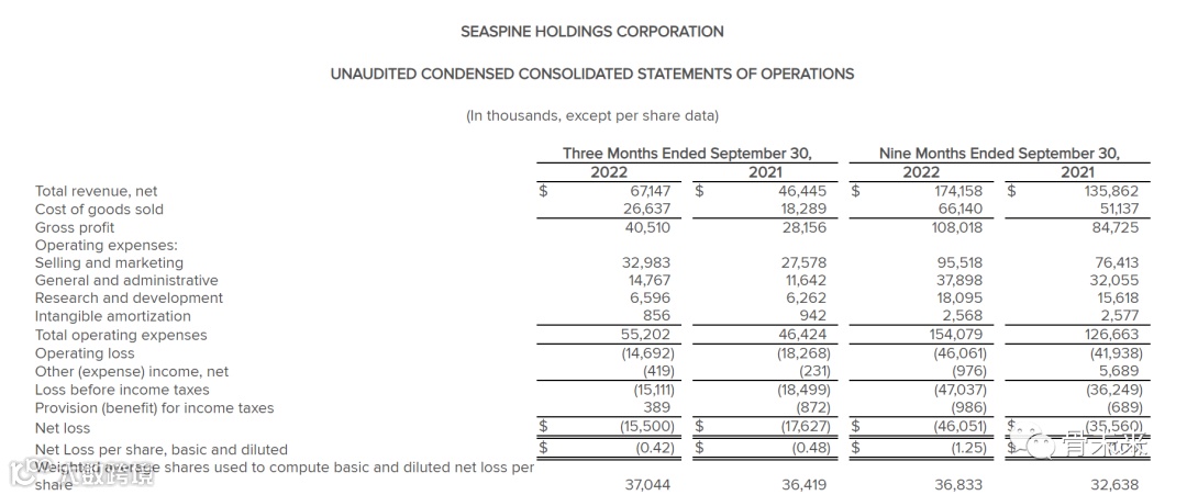 第三季度,SeaSpine公司美国所有产品组合的收入增长势头强劲,其中脊柱植入物和使能技术产品组合增长了30%。第三季度毛利率为 60.3%,而2021年第三季度为60.6%。2022年第三季度的调整后毛利率为 61.8%,而2021年第三季度为 64.3% 。2022年第三季度欧洲分销商的脊柱植入物收入增加了1000万美元,毛利率较低。