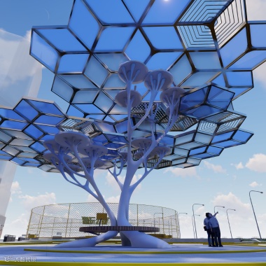 外观与自然界生长出来的树木相似,但是在功能上,与天然树木不同的是,这颗“树”“树干”由钢筋制成,“树叶”由太阳能电叶片构成由钢筋发电能自给自足,为碳减排领域的数字化和智能化提供了新的可能。