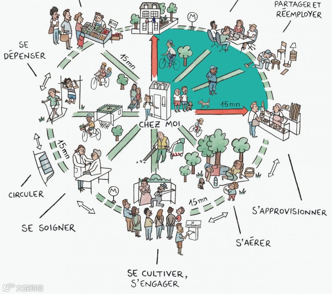 巴黎共同体(Paris en Commun)的15分钟城市概念图