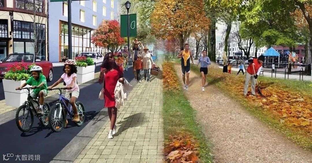 波特兰的20分钟邻里(20-minute neighbourhoods)计划旨在重新构思土地利用的方式,并扩展其覆盖范围,到2030年保证90%的居民能够通过步行及骑自行车的方式满足基本日常需求。