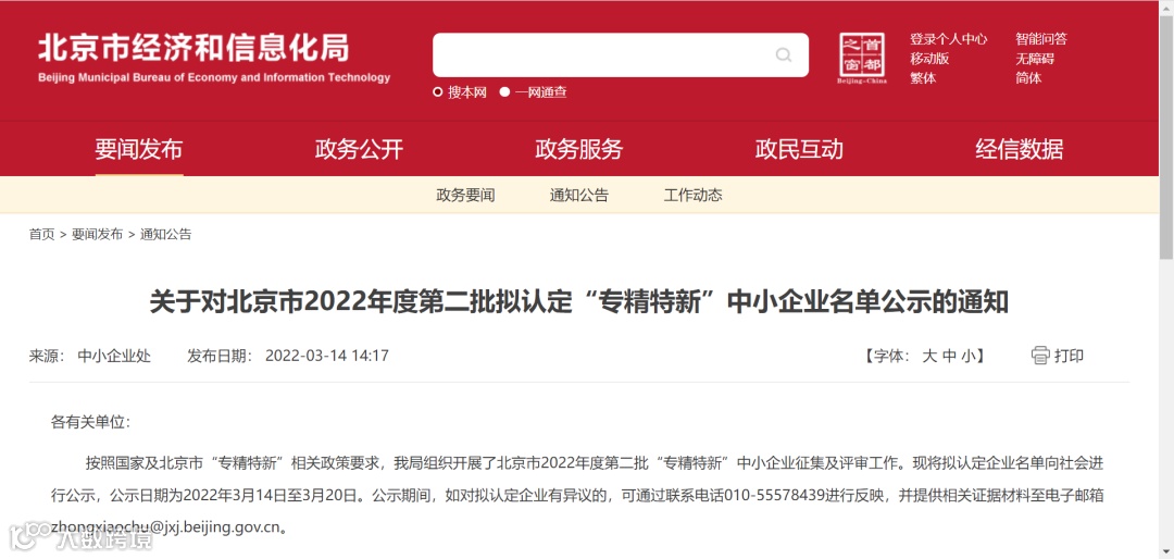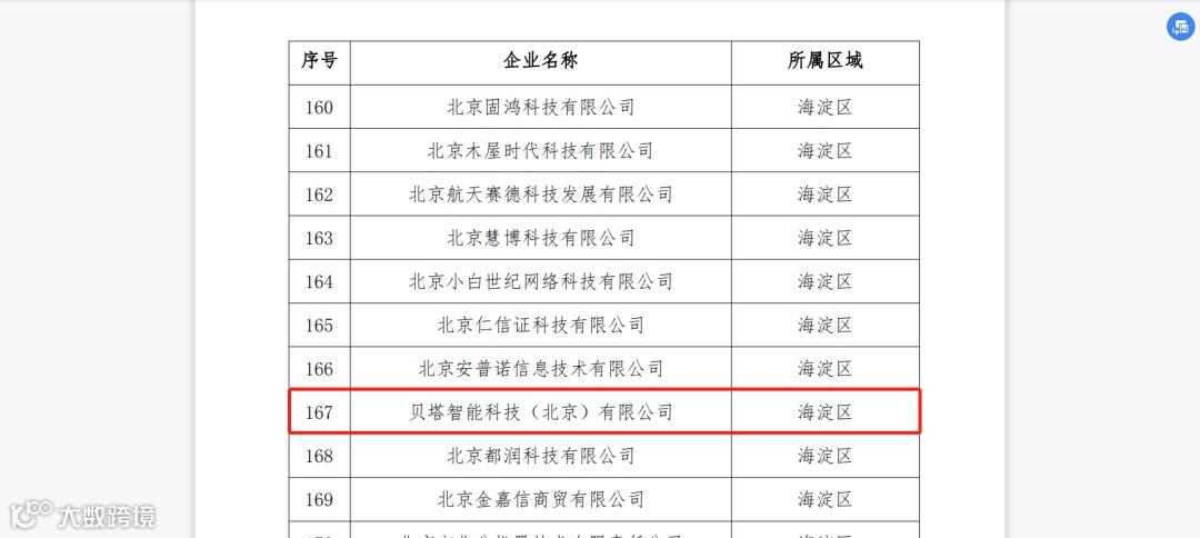 近日,北京市经济和信息化局公示了2022年度第二批“专精特新”中小企业名单,贝塔智能科技(北京)有限公司凭借其在创新引领、行业影响力、人工智能技术、智慧城市等方面的突出成绩,成功入选。