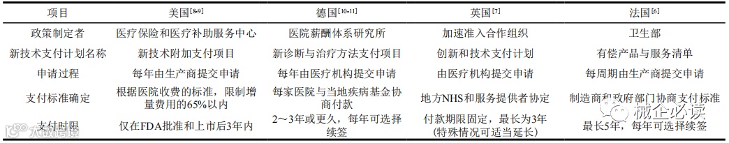 本文主要对美国、德国、英国、法国和日本创新技术支付模式和成果进行对比。