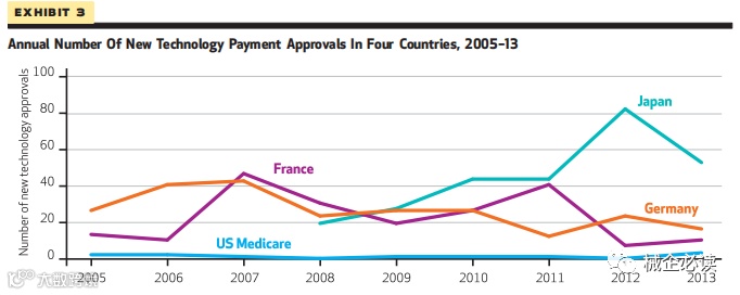 在2002-2013年,美国批准的创新技术共花费2.017亿美元的医疗保险付款,不到国会预期金额的一半,仅占CMS预测金额的35%。在30项新技术中,只有两项的实际支付额超过了CMS的预测。其每年被批准用于新技术附加支付计划的技术数量很低,相应的支付金额也远远低于CMS和制造商的估计金额。
