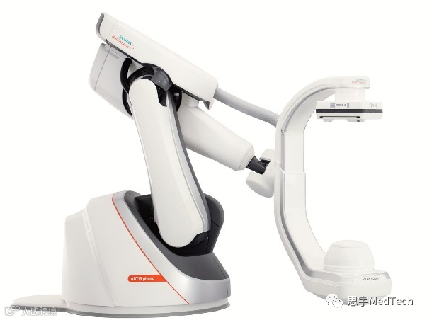 ARTIS pheno机器人手臂式血管造影系统采用落地式底座8轴位C型臂设计,多变紧凑的停泊位置有助于增加可利用空间,实时像素位移修正技术能有效解决在DSA和路图功能中病人移动造成的图像问题。此外,该系统采用全尺寸晶体硅平板探测器,达到低至1nGy的可成像剂量,从而降低医生和患者在临床诊断和治疗过程中受到的放射性损害。