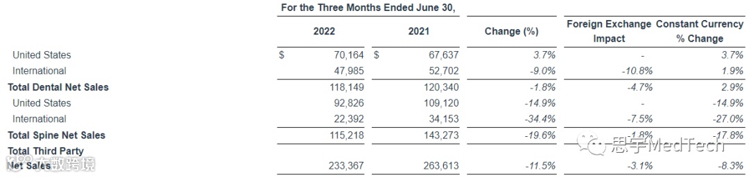 ZimVie(纳斯达克代码:ZIMV)最新公布的第二季度财务报告显示(也就是从捷迈邦美Zimmer Biomet完成拆分后的第一个完整季度),总销售额2.334亿美元,同比下降了11%。