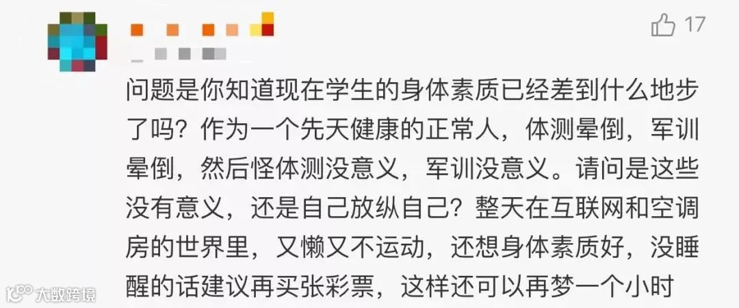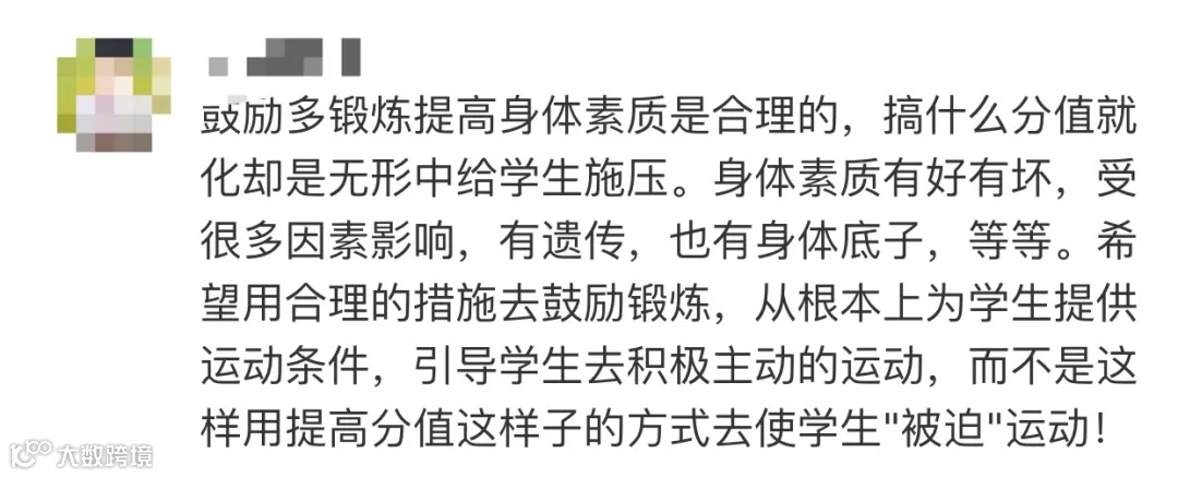 还有人提到,提高学生身体素质固然是合理的,但不应该以应试的形式。来让学生“被迫”运动。