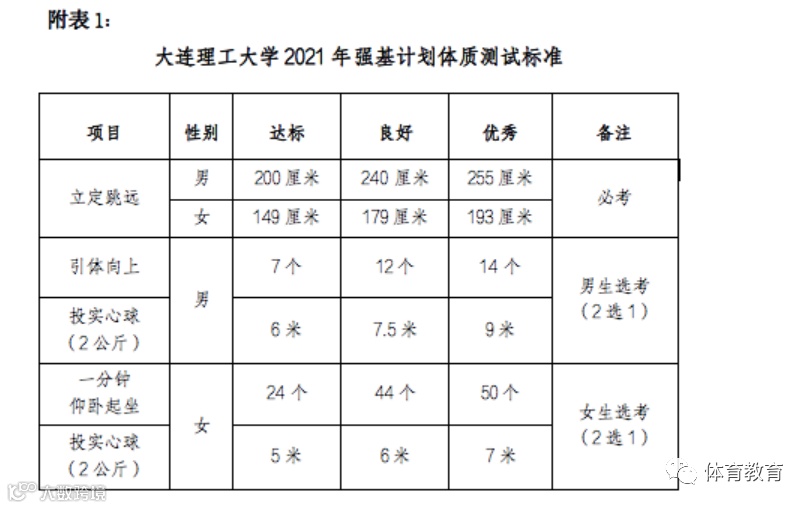 体质测试主要考察学生的基本身体素质,不合格者无入选资格,具体测试办法另行通知。