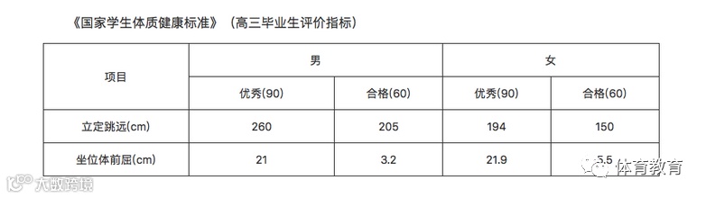 体育测试:测试包括立定跳远、50米跑2个项目。测试评分按照《国家学生体质健康标准》(2014版)高三年级标准执行。