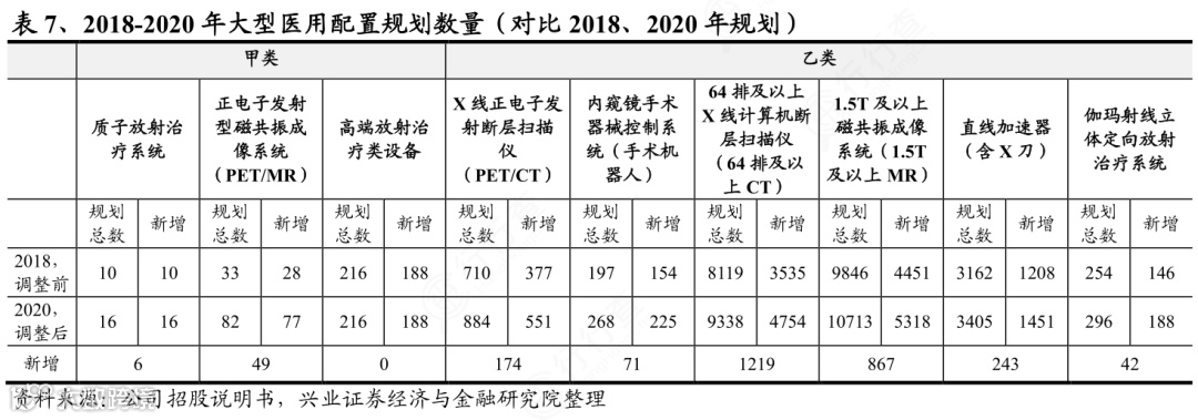 早在2018年,国家就更新了《大型医用设备配置许可管理目录》,正式放开64排以下CT配置限制,并将PET/CT从国家统一规划配置的甲类设备调整为省内统一规划的乙类设备。且将首次配置大型医疗器械纳入甲类管理目录的价格低限由500万元人民币上调至3000万元。