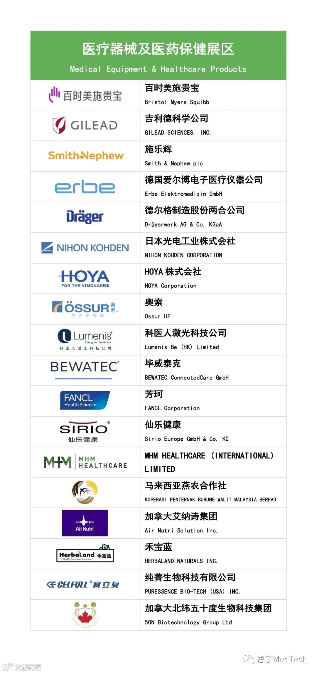 举行,共有145个国家、地区和国际组织参展。其中医疗器械展区在7.1\7.2\8.1,参展企业名单如下图: