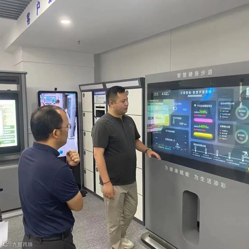 考察当日,调查组一行体验参观了贝塔智能自主研发的AI武术大屏、AR武术大屏、智慧步道系统、体态识别展示大屏、智慧管理平台等智慧设备并给予了高度评价。