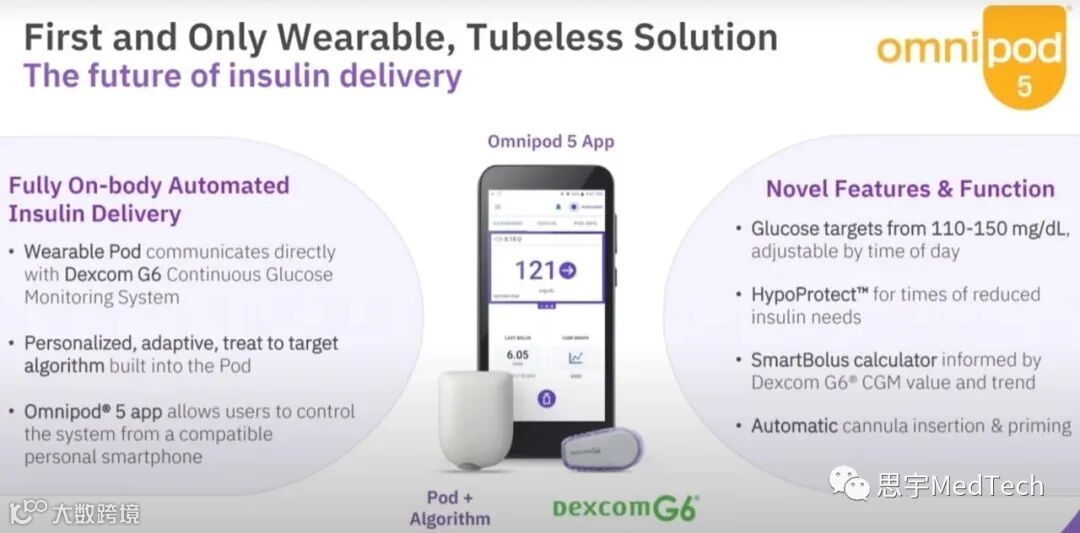 与前几代需要外部个人糖尿病管理器 (PDM) —— 一种类似智能手机的小型设备不同的是,Omnipod 5是目前全球唯一一款无管路自动胰岛素输送 (AID) 系统,并且它可直接通过智能手机APP进行控制。该应用程序最初仅适用于 Android 用户,但 Insulet 正在开发 iPhone 版本——尽管尚未公布此版本何时可用。