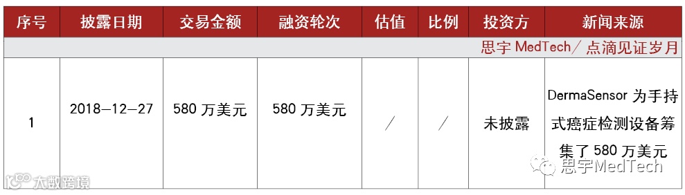 本次入选名单中包括DermaSensor,他是上个月在波士顿DeviceTalks举办的MedTech Innovator Mid-Stage Companies Pitch Event的获胜者。