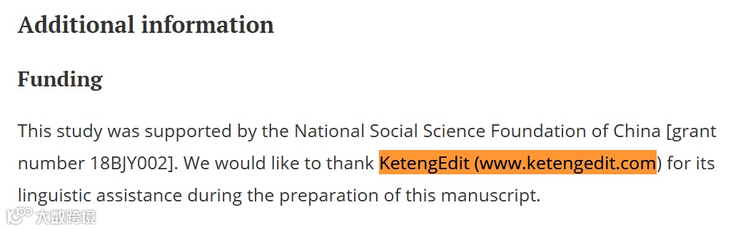 在本论文的准备过程中,科藤学术中心为作者提供了翻译润色服务,并在文章致谢中被正式提及。