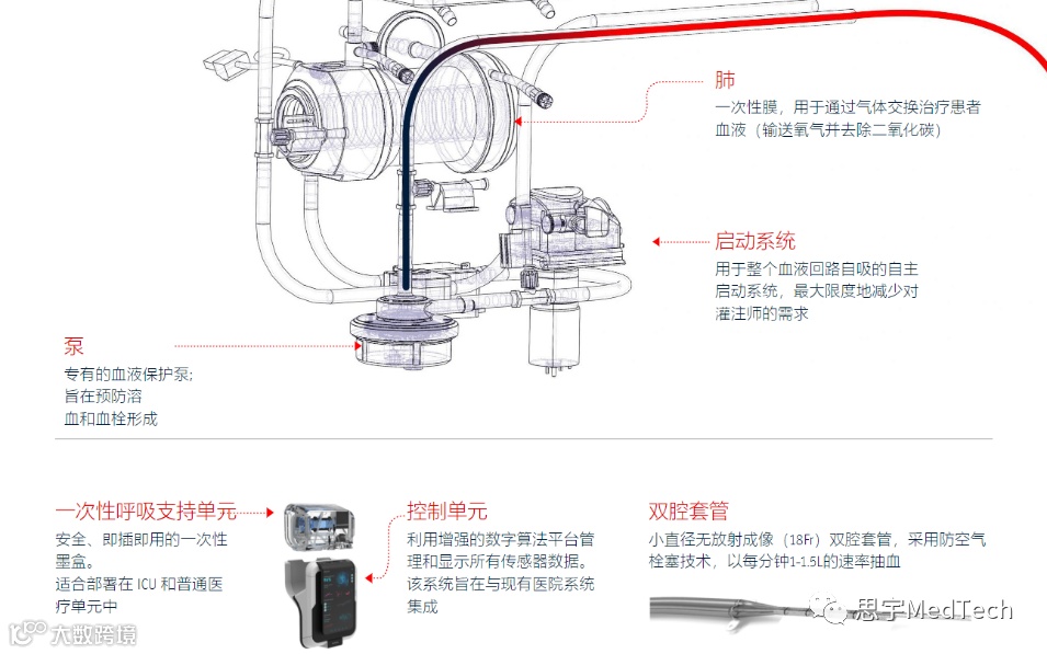 ART系统作为一个“人工肺”,在病人清醒和自主呼吸的情况下,通过插入颈静脉的双腔插管来向血液中注入氧气,并清除血液中的二氧化碳,可以在几分钟内重新平衡病人的氧饱和度水平。同时,ART系统最大限度地减少了对需要插管和医学诱导昏迷的高侵入性、高风险和高成本的机械通风系统的需求。ART系统还可以潜在地减少先天性伤害或疾病的风险,减少住院天数。