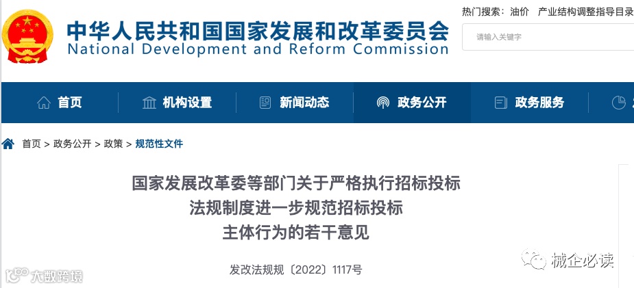 2022年8月1日,国家发改委、工信部、公安部等13部门联合印发《关于严格执行招标投标法规制度进一步规范招标投标主体行为的若干意见》,严格规范招投标各方主体行为。