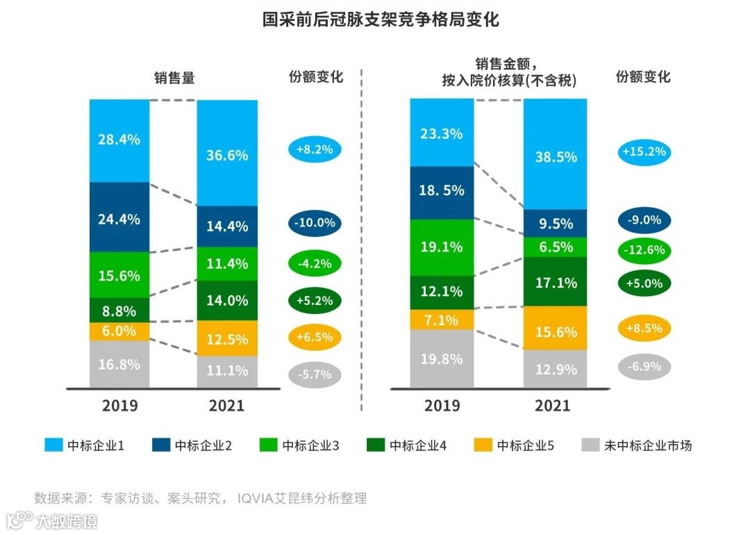 集采给中标企业带来的红利是销量而非盈利。中标国家集采将帮助中标企业巩固甚至扩大自身份额,打通中标产品入院渠道,进而带动周边产品线入院,带来重塑竞争格局的机会。带量采购促使冠脉支架市场重新洗牌、市场集中度进一步提升。