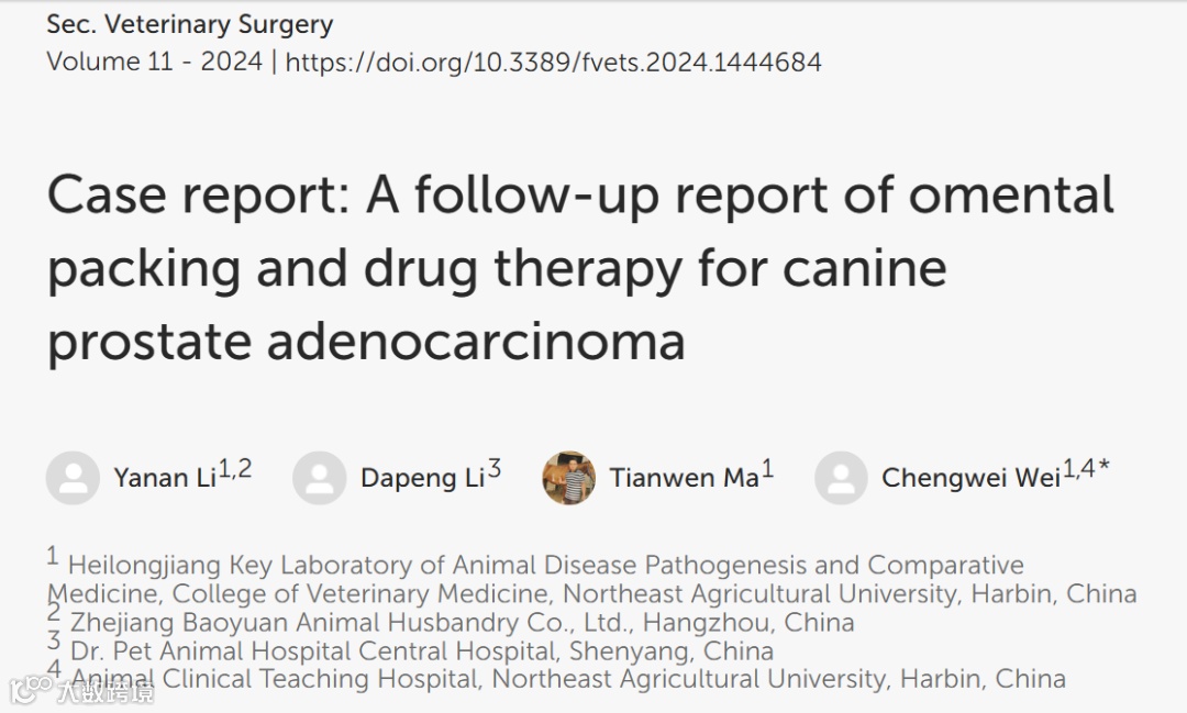 近日,东北农业大学学者联合多家单位科研人员成功报告了一例老年犬前列腺腺癌的治疗案例,患者术后6个月随访无明显复发,标志着在犬前列腺疾病治疗领域取得了突破性进展。