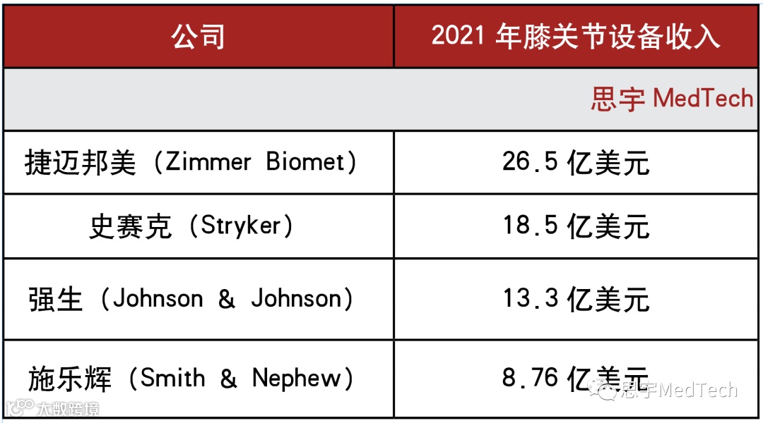 ▲2021年膝关节设备收入,来源:Annual earnings reports