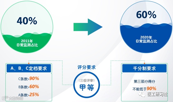 为进一步完善我国医院评审评价体系,指导医院加强自身建设和管理,2020年底国家卫健委颁布《三级医院评审标准(2020年版)》。新版标准的根本转变是评审模式。推动医院评审由以现场检查、主观定性、集中检查为主的形式转向以日常监测、客观指标、现场检查、定量与定性评价相结合的形式,目的是: