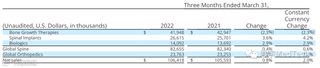 “鉴于COVID-19大流行、劳动市场逆风、持续的全球供应链中断以及欧洲政治不稳定造成的宏观金融影响,我们对第一季度的财务和运营业绩感到非常满意。” Orthofix 总裁兼首席执行官Jon Serbousek说:“我们在过去两年中所做的战略投资,包括专注于新产品创新和发展我们的全球商业组织,将继续带来回报。随着M6-C™人工颈椎间盘和我们的Fitbone™髓内肢体延长系统等创新产品不断被采用,生物制品、脊柱植入物和骨科的发展再次推动了业绩增长。”