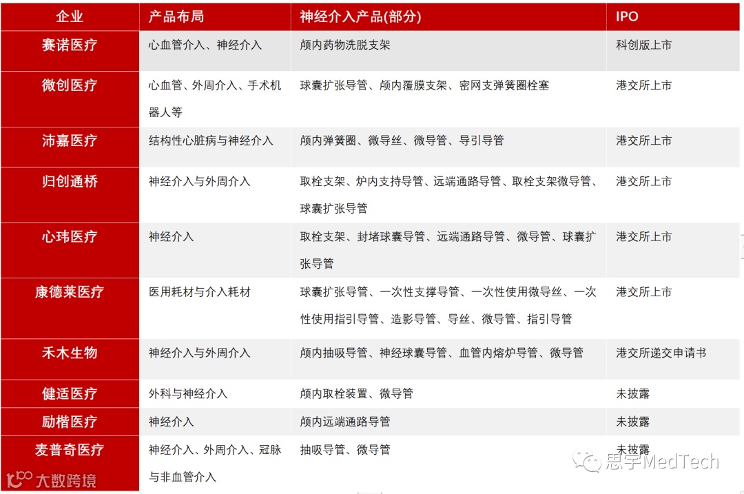 ▲部分国内神经介入公司产品管线