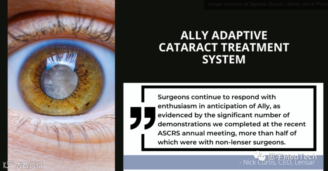 在最近的美国白内障和屈光手术学会 (ASCRS) 会议上,超过一半的Ally演示是由非 Lensar外科医生完成的。柯蒂斯说:“我很高兴,绝大多数外科医生在看到Ally演示后表示有兴趣在他们的手术中使用Ally。”Ally具有占地面积小、成像卓越的特点,还配有双脉冲激光和先进的散光管理工具。
