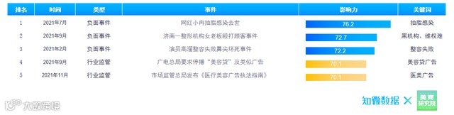 2021年,杭州网红小冉抽脂感染去世,济南一整形机构老板威胁殴打顾客,女演员高溜整容失败鼻尖坏死……频频发生的医美事件损害消费者合法权益,掀起舆论热潮。纵观2021年,国家大力整治医美产业、打击非法医美,系列医美相关政策法规密集出台,推动行业合规化发展,尤其是对“经营资质”和“广告营销”两大领域更是严格监管。