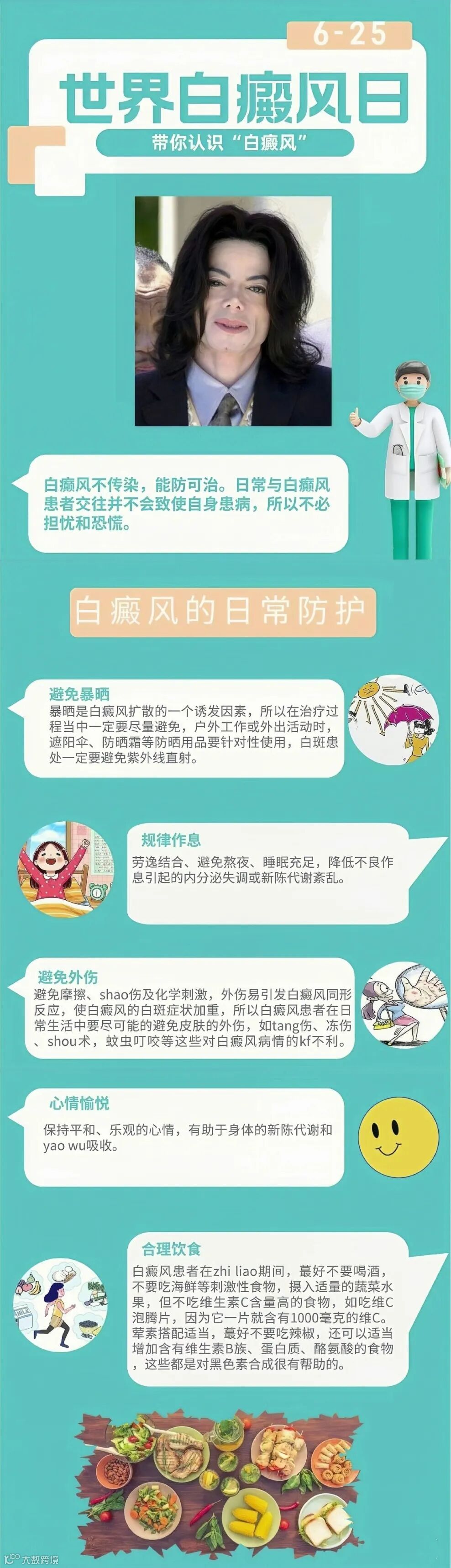 2024年6月25日是第十四个世界白癜风日,白癜风是常见的皮肤病,发病率可达1-2%,全国白癜风患者可能达1400万人左右。由于对白癜风的认知不足,很多人对白癜风常有许多的误解。殊不知,这种误解会严重影响患者及其家人的日常生活,并可能造成严重的精神、心理伤害。其实白癜风不传染,且可防可治。