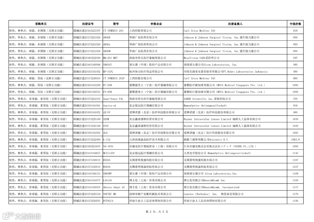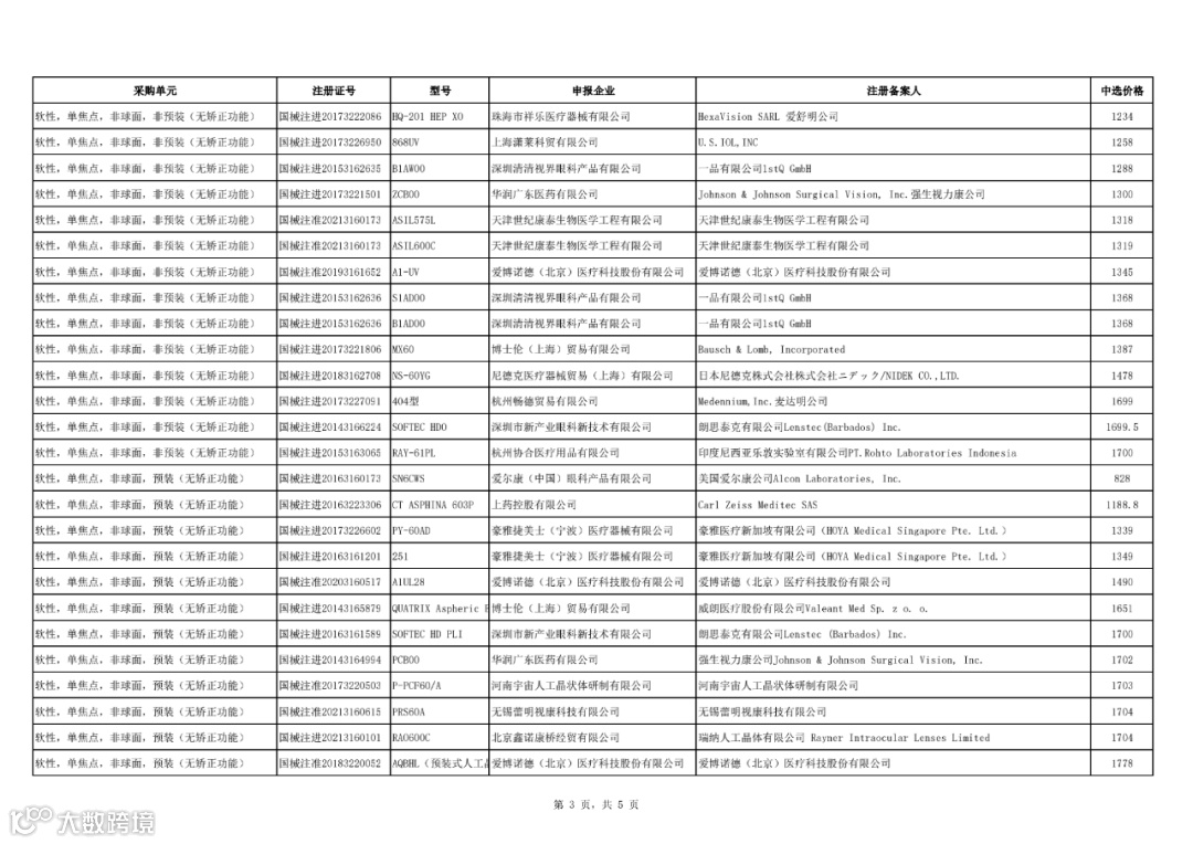 《通知》公示了此次联盟集采人工晶体类医用耗材的中选结果,中选价一并公布(详情见文末)。