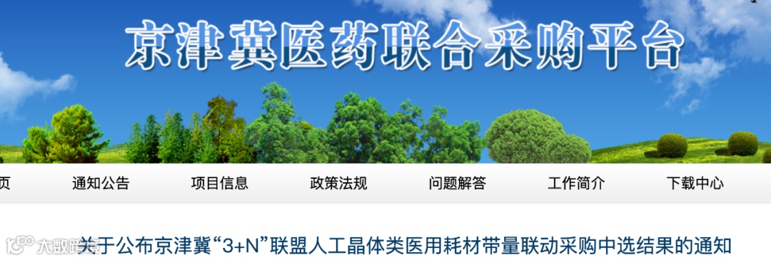 日前,北京市医药集中采购服务中心、天津市医药采购中心、河北省医用药品器械集中采购中心发布《关于公布京津冀“3+N”联盟人工晶体类医用耗材带量联动采购中选结果的通知》(以下简称《通知》)。