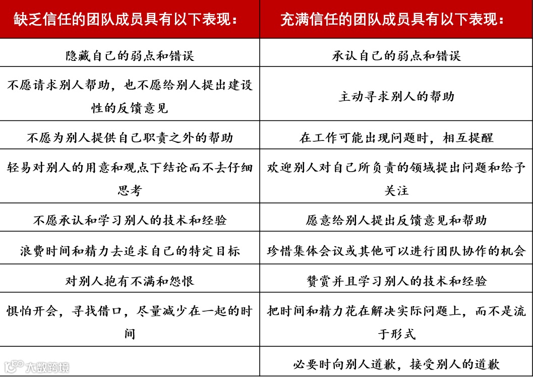 信任是是高效、团结一致的团队的核心。没有信任,团队协作则无从谈起。