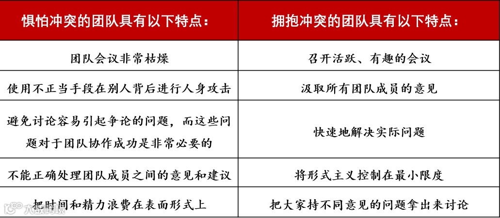 良好而持久的合作关系,需要积极的冲突和争论来促使其前进。遗憾的是,冲突在很多情况下被视为禁忌,尤其是在工作中。你的职位越高,你就越会发现你的同事们花很多时间和精力试图避免激烈的争论,而这种争论正是团队所必需的。