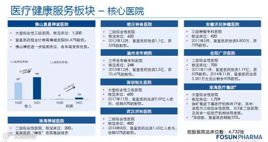 上海复星健康科技(集团)有限公司(原名上海复星医疗(集团)有限公司,于2021年5月20日改名)(以下简称“复星健康”),是中国最大的民营医疗集团之一,在大湾区、长三角、环渤海地区、华中地区、成渝地区已布局多家医疗机构,截至2021年6月30日,其控股医院的总床位数为4732张。目前正在打造数字化和线上医疗服务平台,为患者提供“互联网 +院内 +院外服务”的一站式健康和全病程闭环解决方案,