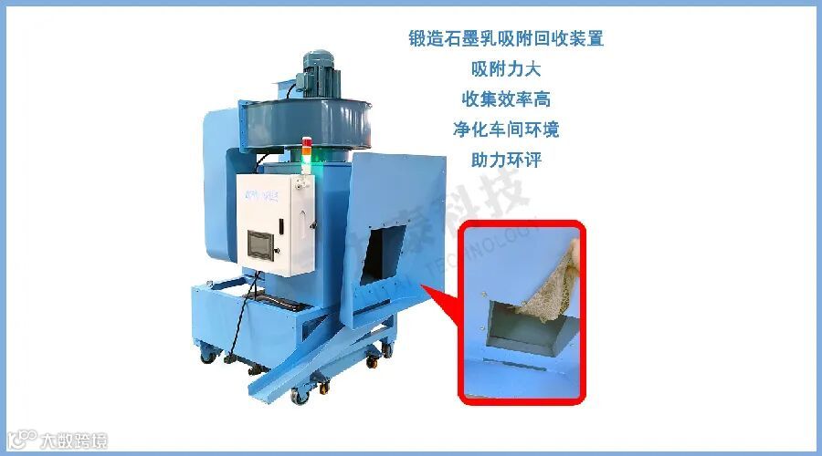 锻造厂用石墨乳作为锻件与模具之间的脱模润滑剂,当石墨乳喷到工件上起到了润滑脱模的作用,同时也会喷的到处都是尤其是工人的脸上会黑不溜秋,工作环境就会很脏,石墨喷到地上也会很浪费,力泰石墨吸附回收机就可以解决。
