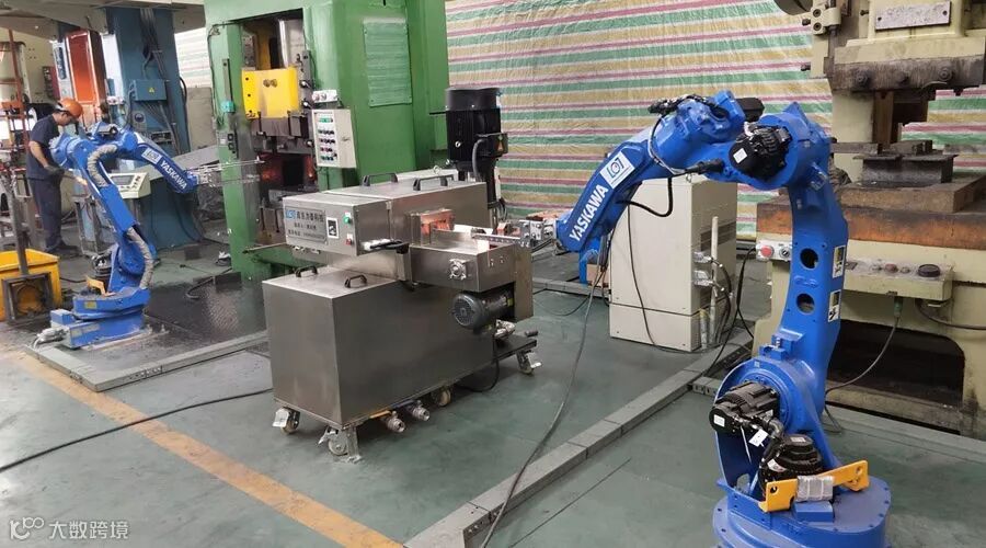 锻造自动化生产线一般包括:中频感应加热炉(冷锻没有)、主机、锻造工业机械手臂、工艺模具模架、压力机进料、磨具润滑、出料等7个部分。