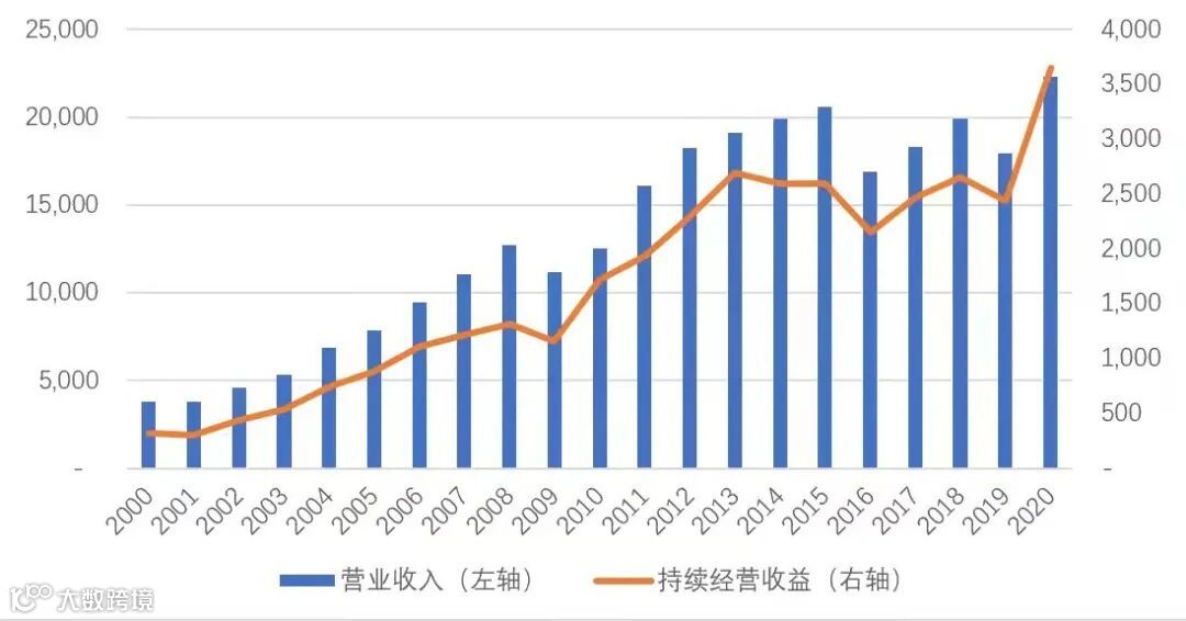丹纳赫2000-2020年营业收入&净利润