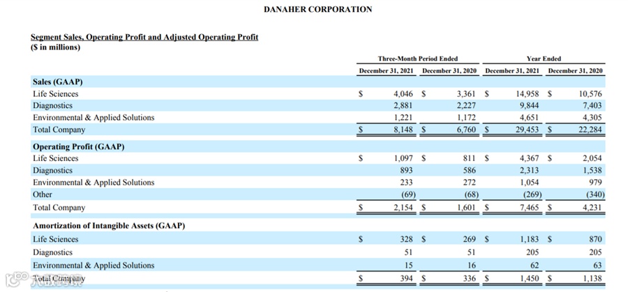 丹纳赫目前主要经营三个业务板块,生命科学、诊断和环境应用。